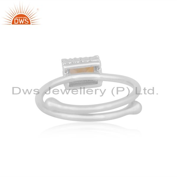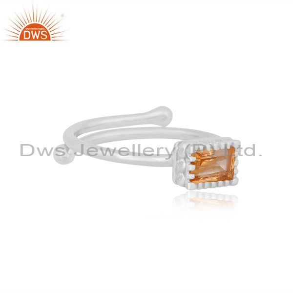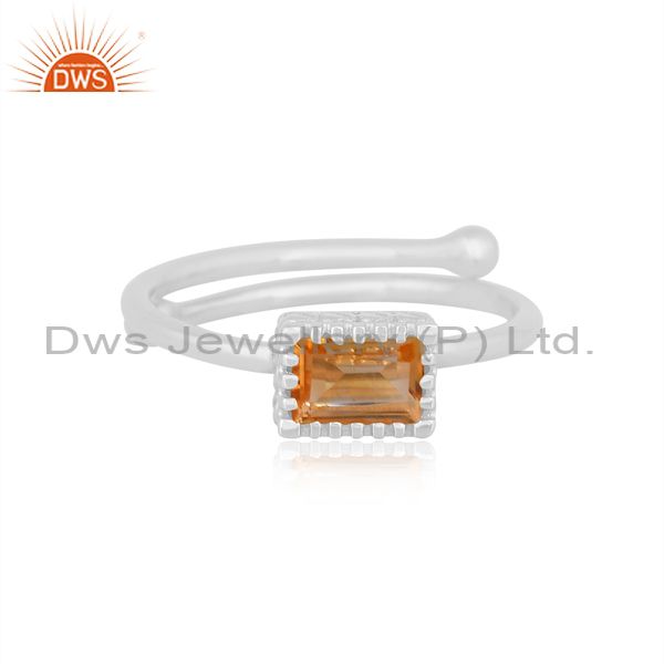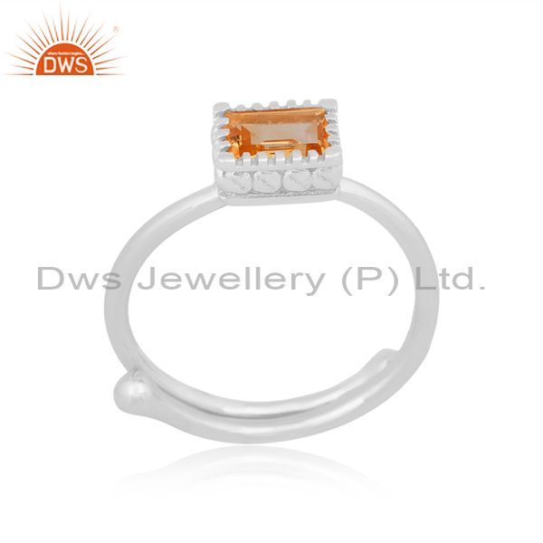 Rectangular Citrine Set Fine 925 Silver Designer Crown Ring