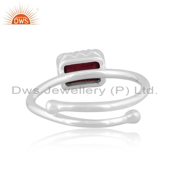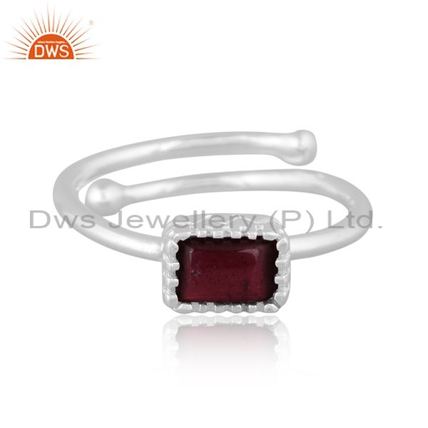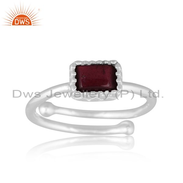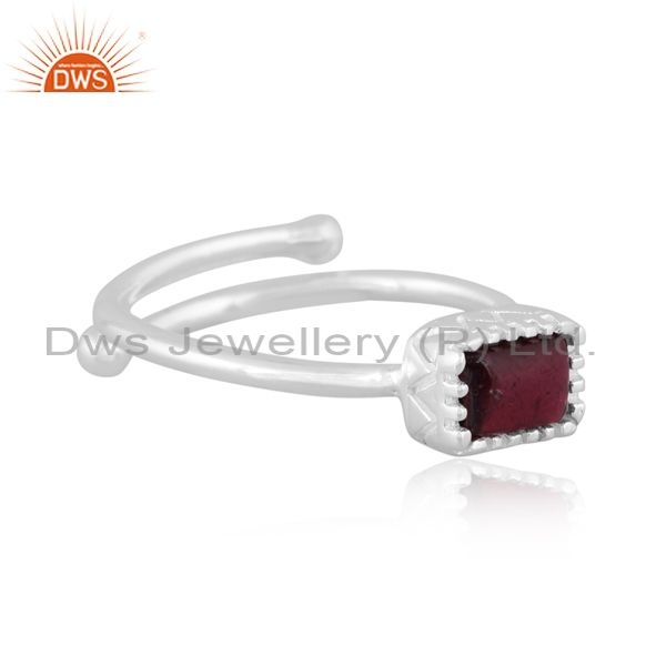 Rectangular Garnet Set Fine Sterling Silver Designer Ring