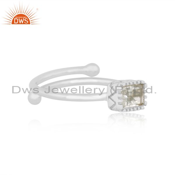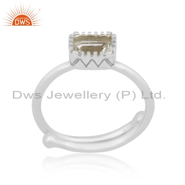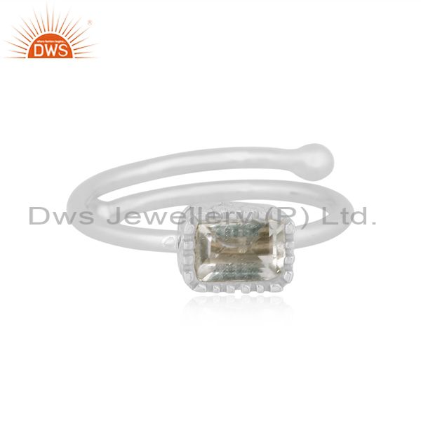 Rectangular Green Amethyst Set Fine 925 Silver Designer Ring