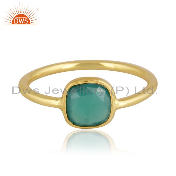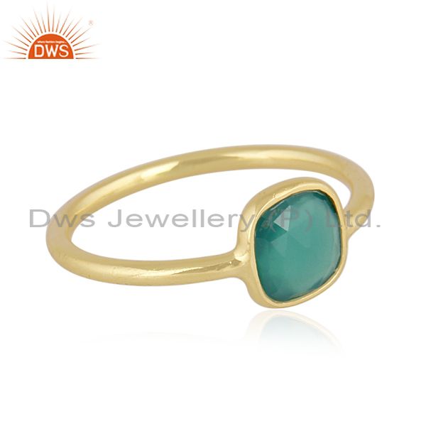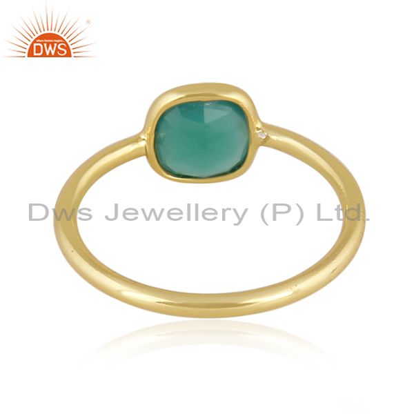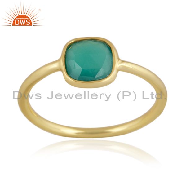 Rectangular Green Onyx Set Gold On 925 Sterling Silver Ring
