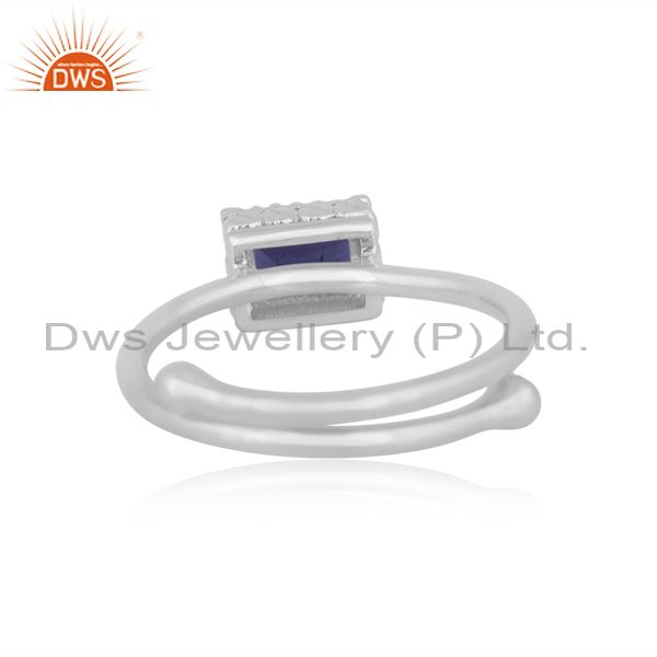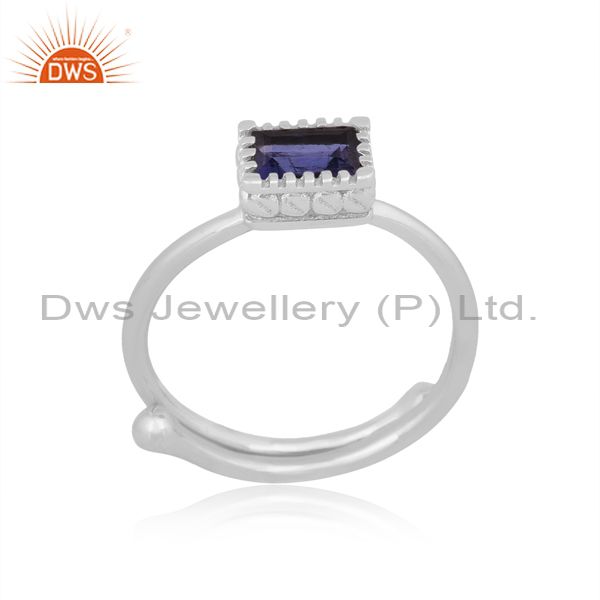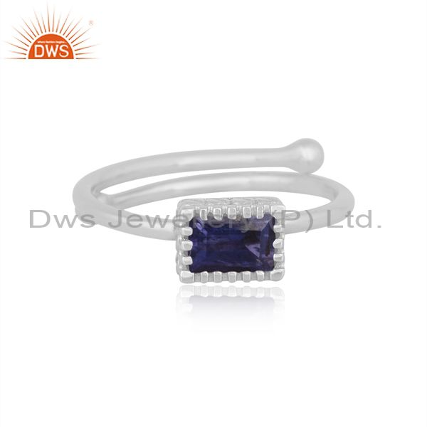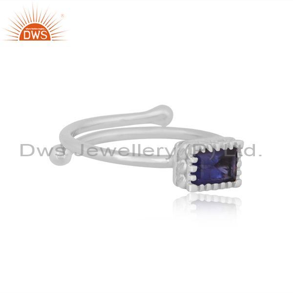 Rectangular Iolite Set Fine 925 Silver Designer Crown Ring