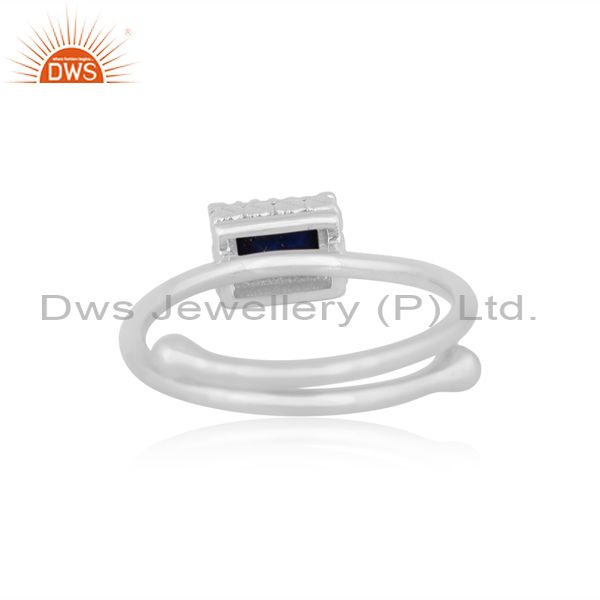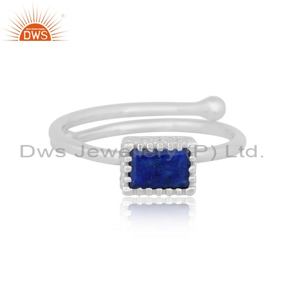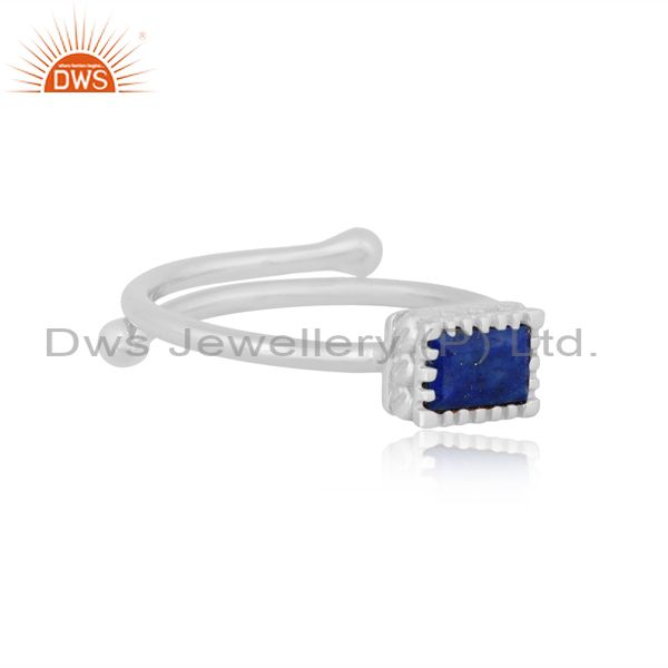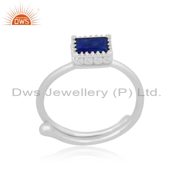 Rectangular Lapis Set Fine 925 Silver Designer Crown Ring
