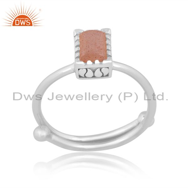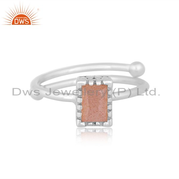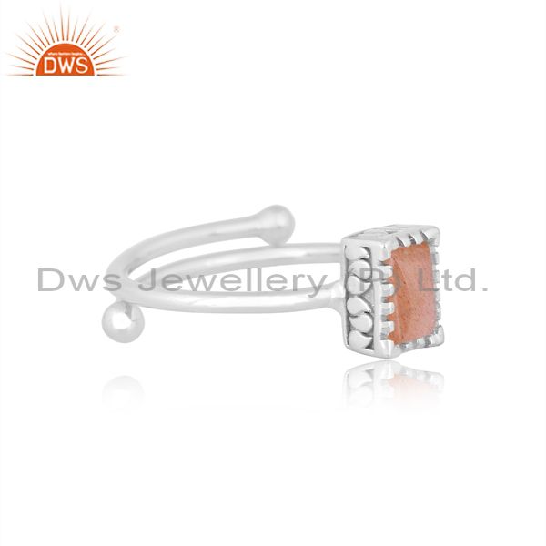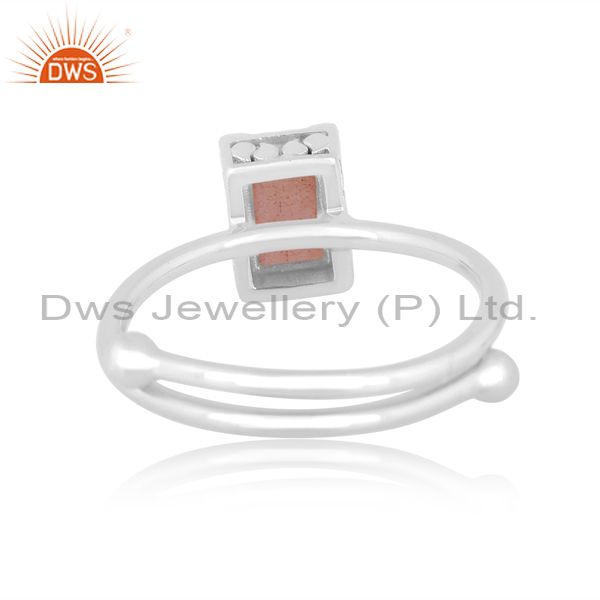 Rectangular Peach Moonstone Set Fine 925 Silver Classy Ring