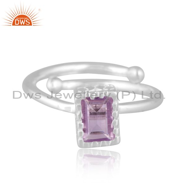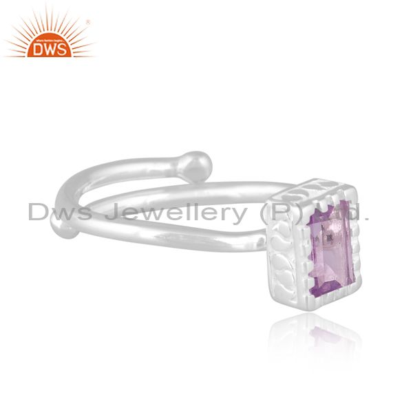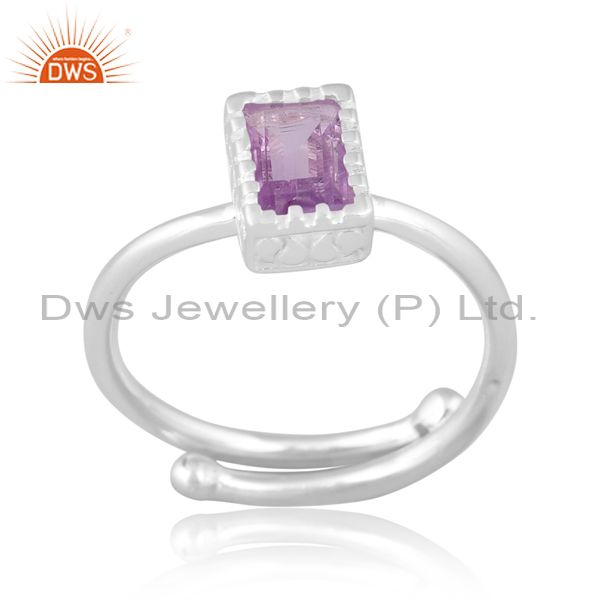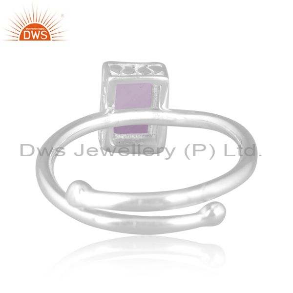 Rectangular Pink Amethyst Set Fine 925 Silver Classy Ring
