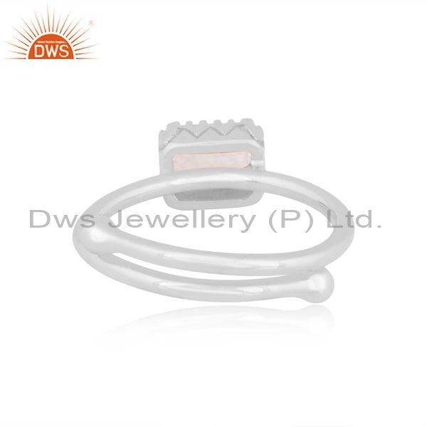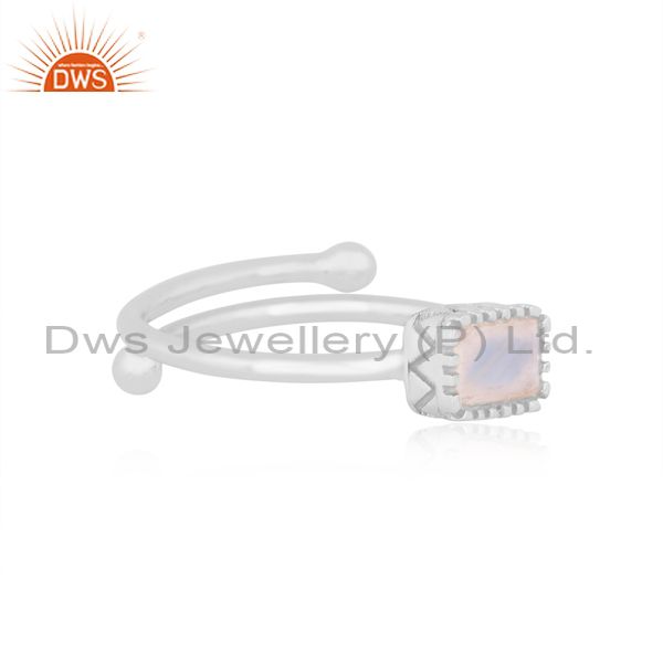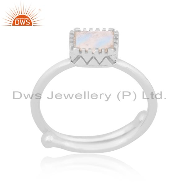 Rectangular Rainbow Moon Stone Set Fine Silver Designer Ring