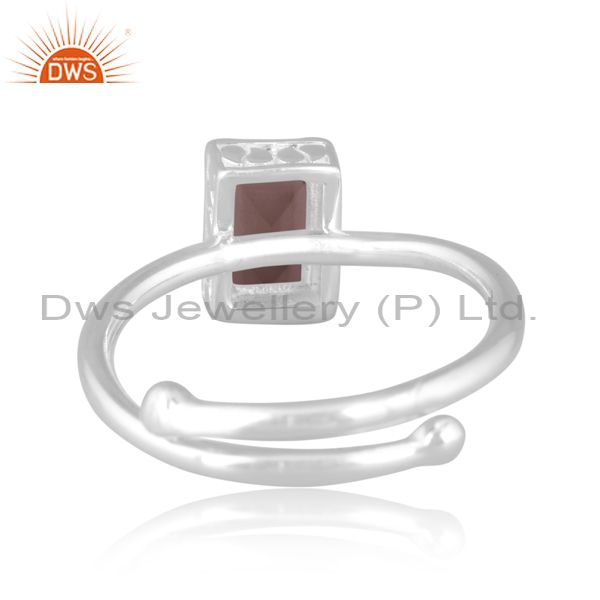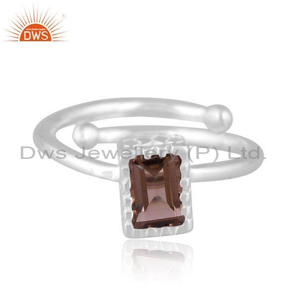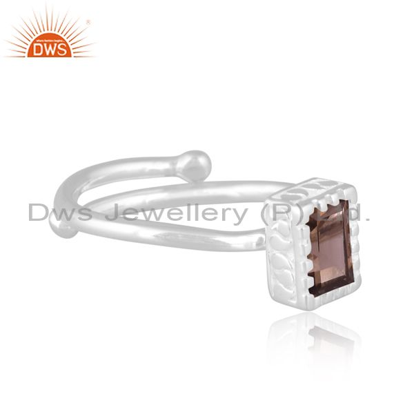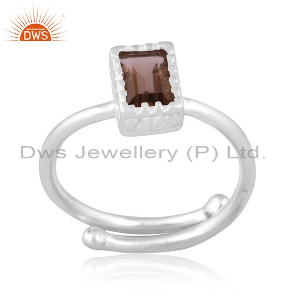 Rectangular Smoky Set Fine 925 Sterling Silver Classy Ring
