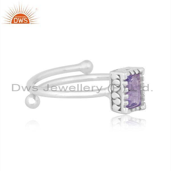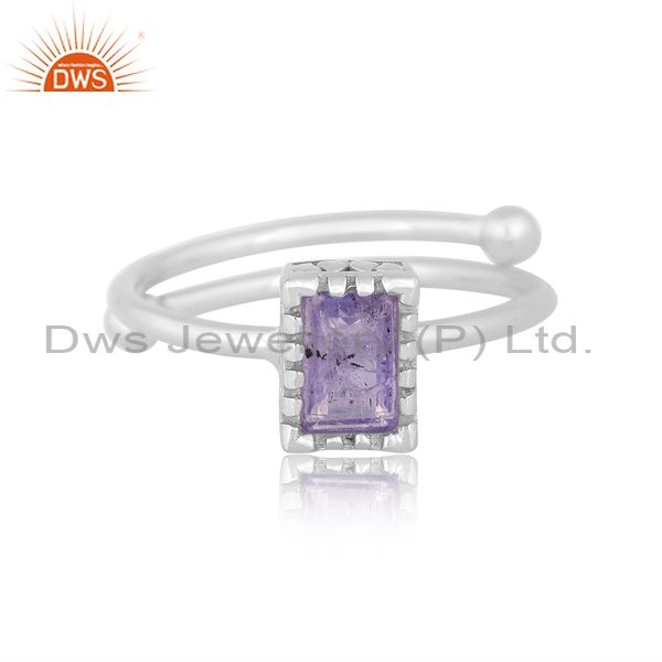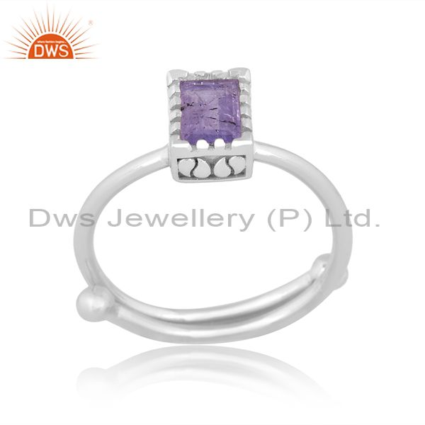 Rectangular Tanzanite Set Fine Sterling Silver Classy Ring