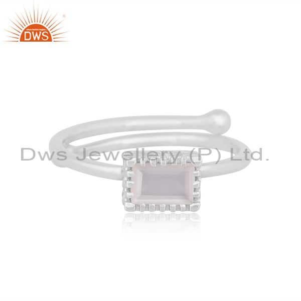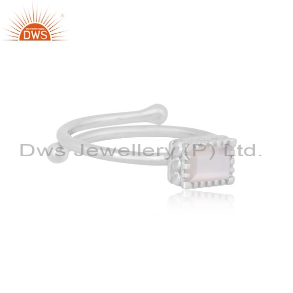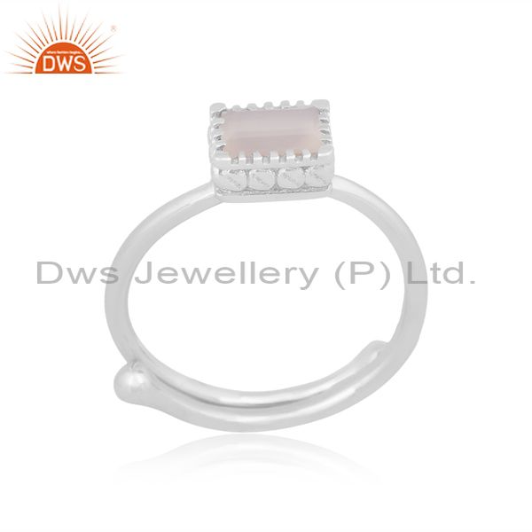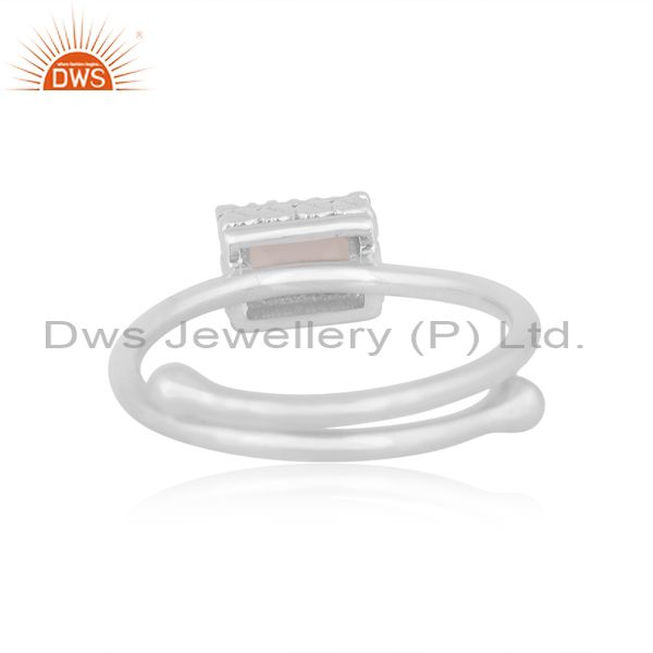 Rectangular White Moon Stone Fine Silver Designer Crown Ring