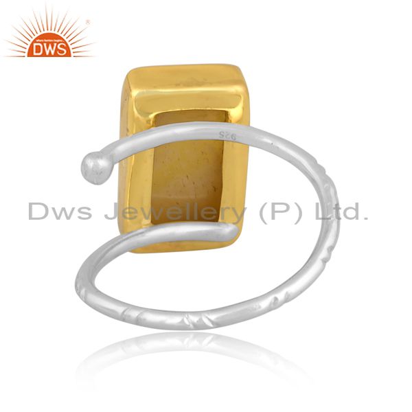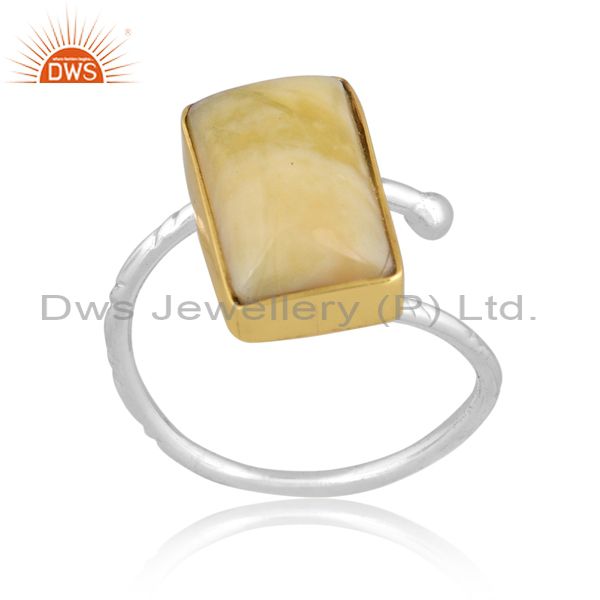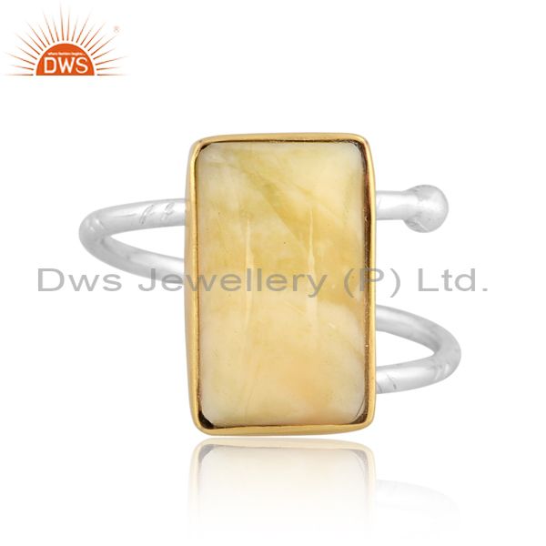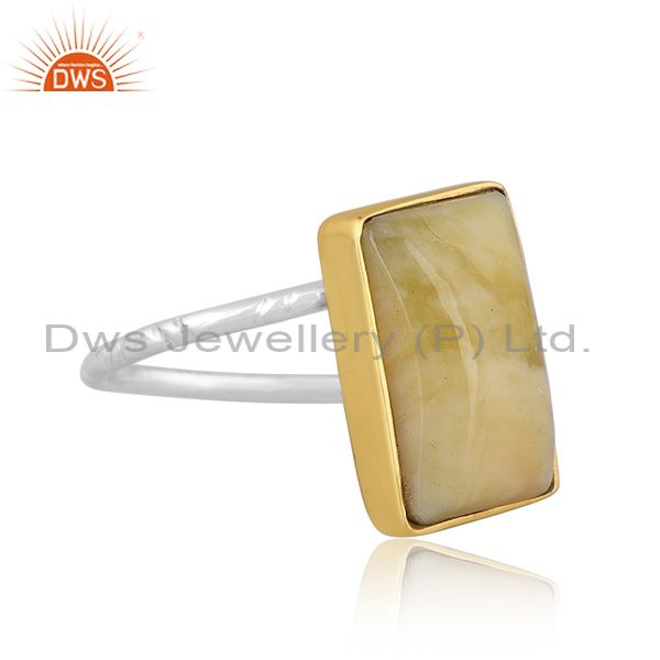 Rectangular Yellow Opal Set Gold On Fine Silver Fancy Ring