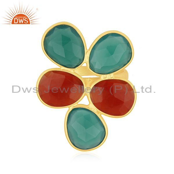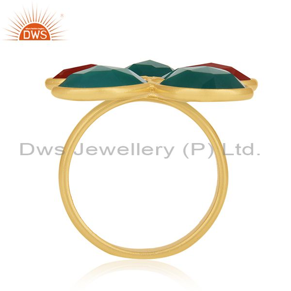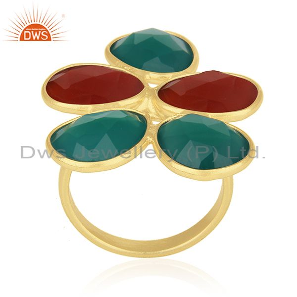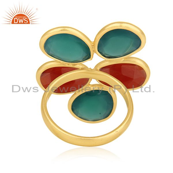 Red and Green Onyx Gemstone Gold Plated 925 Silver Statement Ring Manufacturer