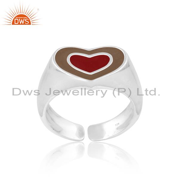 Red Enamel Heart Ring For Every Occasion: Sterling Silver