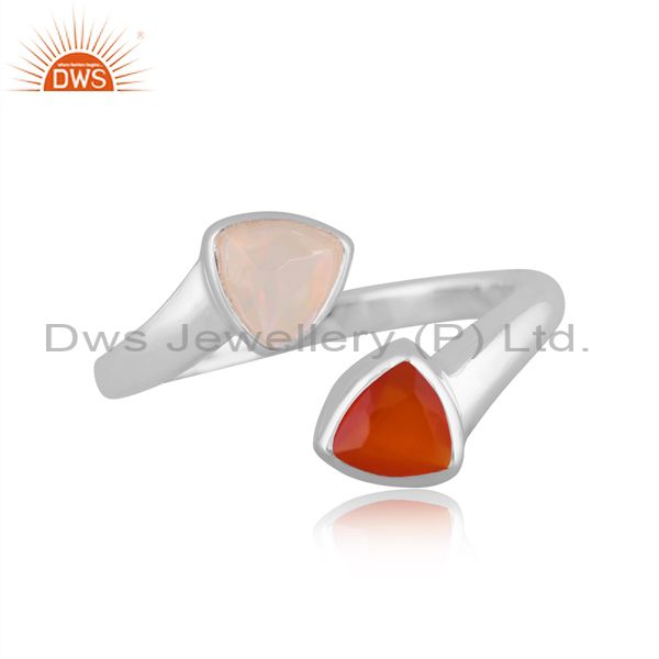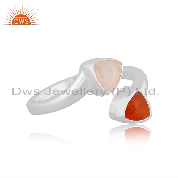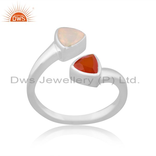 Red Onyx And Ethiopian Opal Fine Silver Classic Open Ring