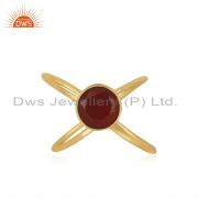Red Onyx Gemstone 925 Silver Gold Plated Designer Ring Manufacturer India