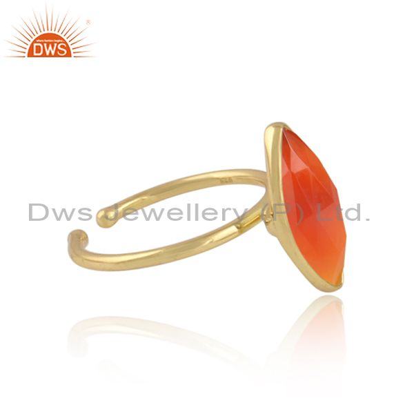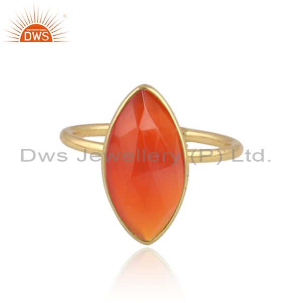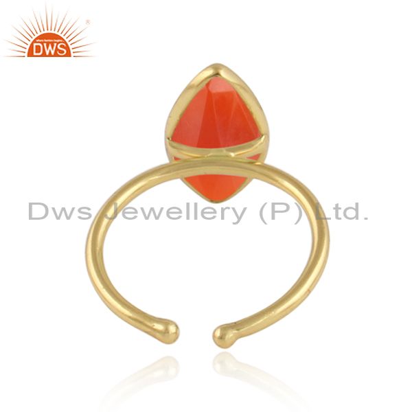 Red Onyx Gemstone Designer 18k Yellow Gold Plated Silver Rings