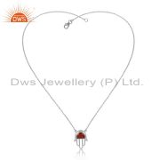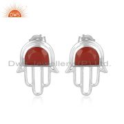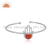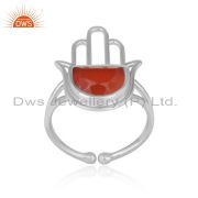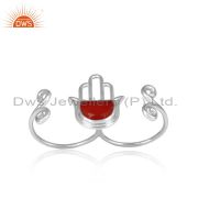 Red Onyx Set Fine 925 Sterling Silver Hamsa Dual Finger Ring