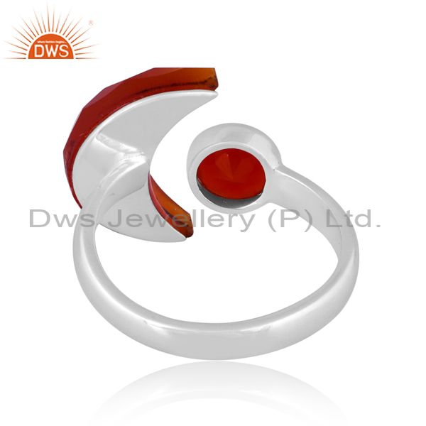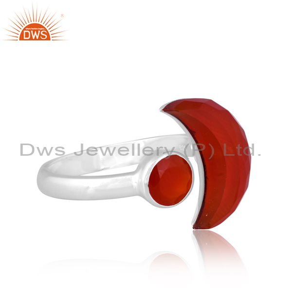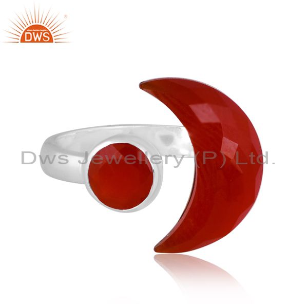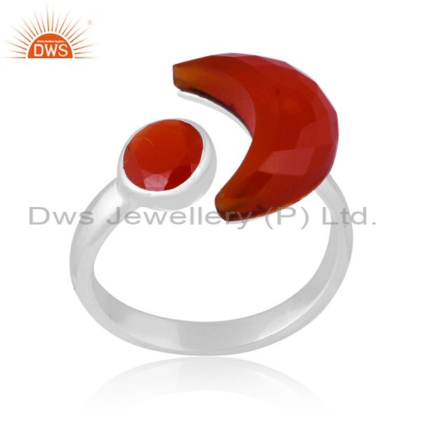 Red Onyx Set Fine Sterling Silver Moon Style Abstract Ring