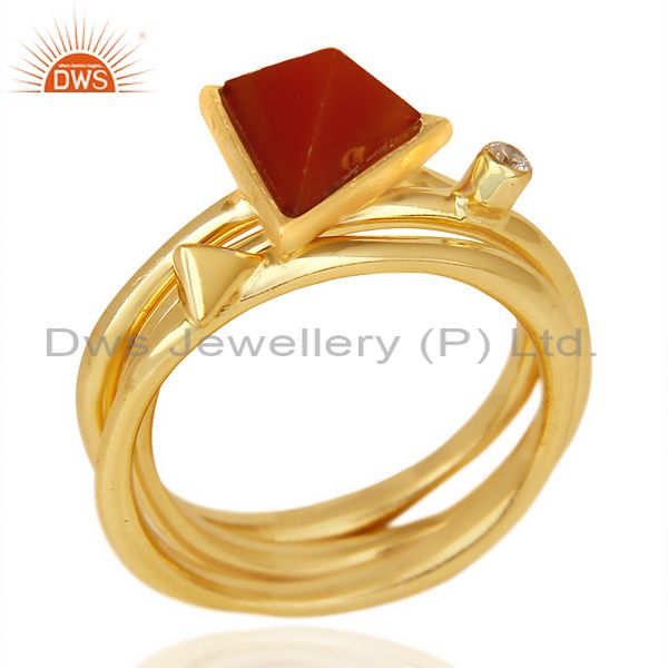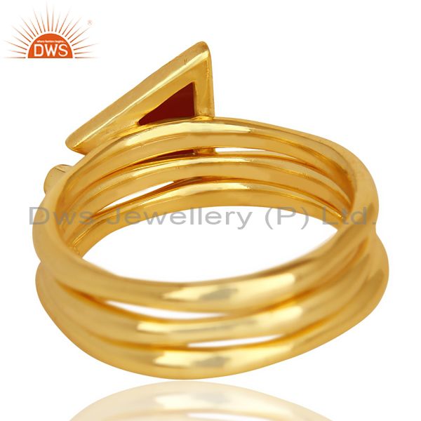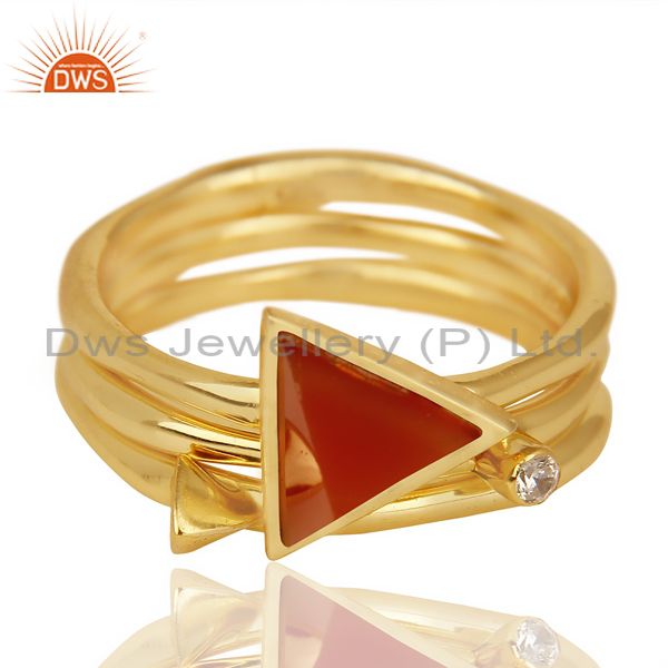 Red Onyx Triangle Cut Gemstone Stacking 14K Gold Plated 92.5 Silver Ring