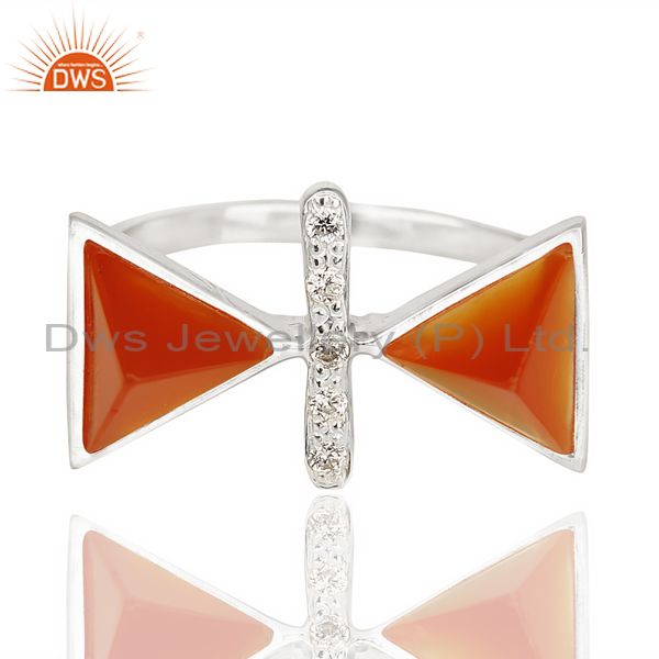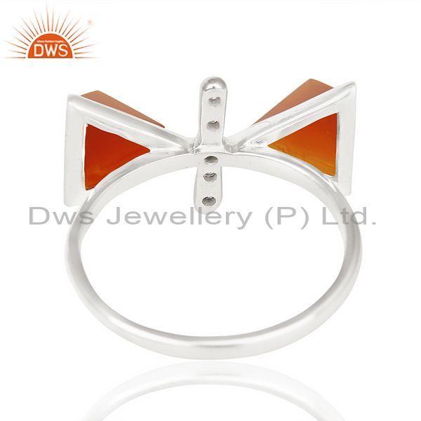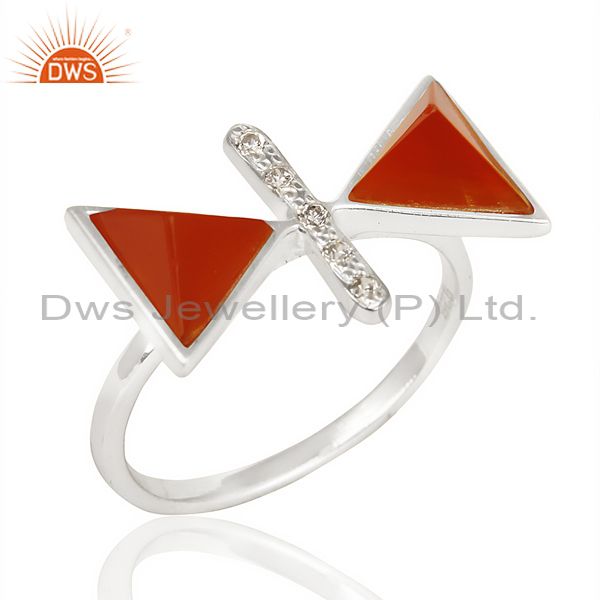 Red Onyx Triangle Cut Pyramid Cz Studded Solid 92.5 Sterling Silver Ring