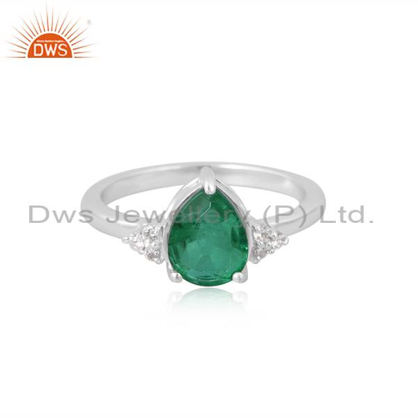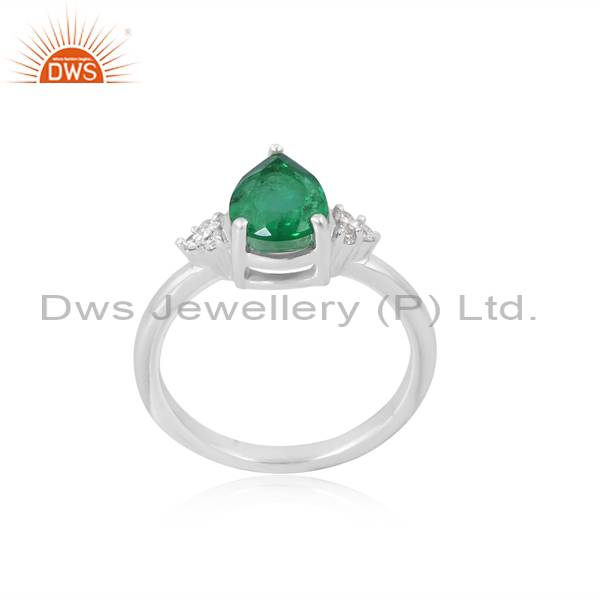 Ring Cubic Zirconia & Doublet Zambian Emerald Quartz