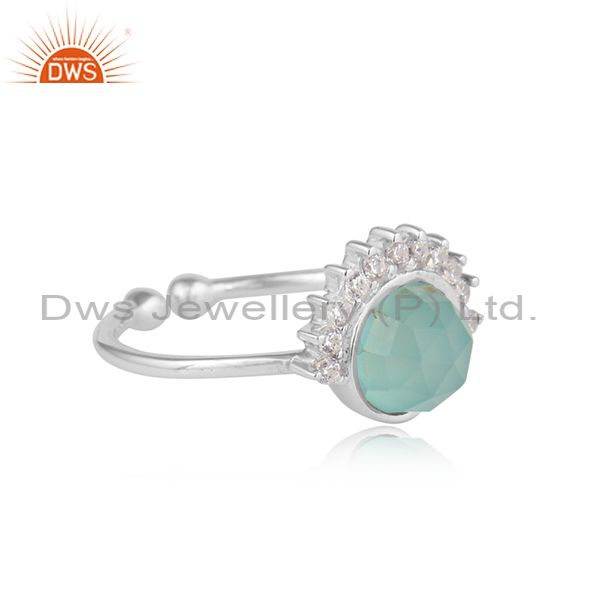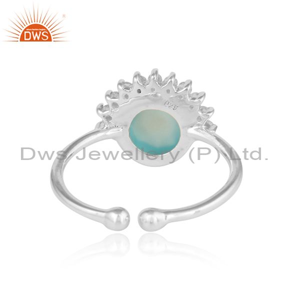 Rising Sun Design Aqua Chalcedony CZ Gemstone Sterling Silver Ring