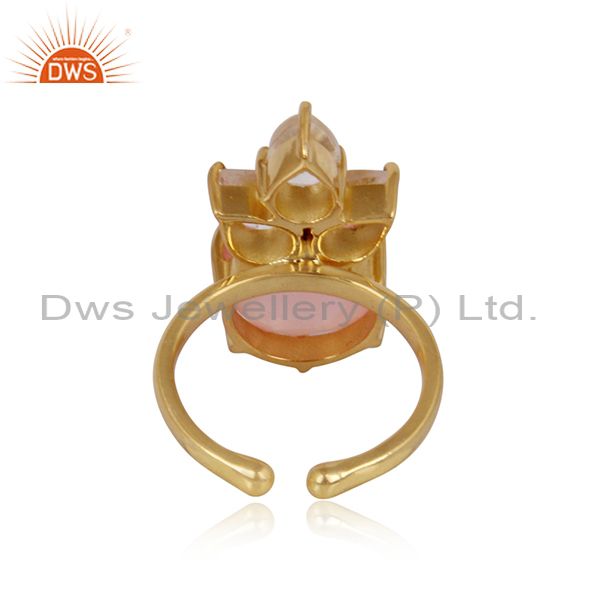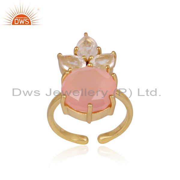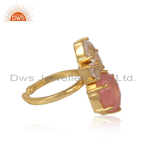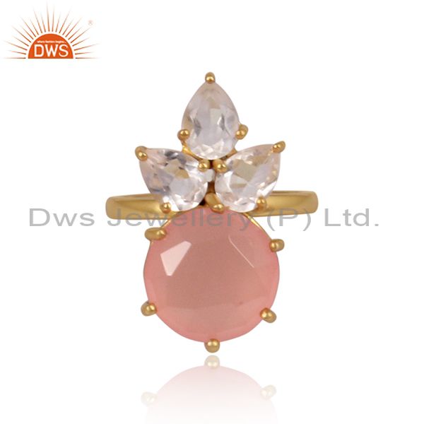 Rose Chalcedony And Crystal Quartz Set Gold On Silver Ring