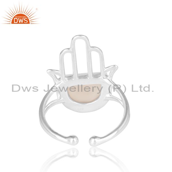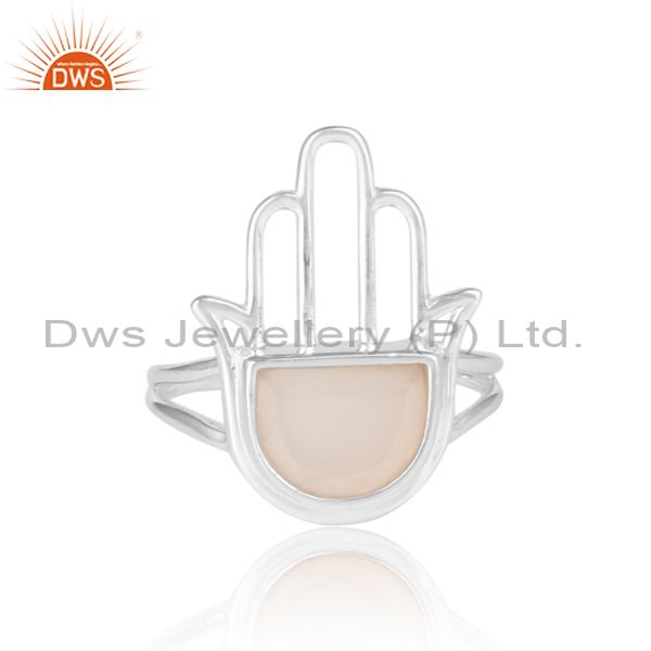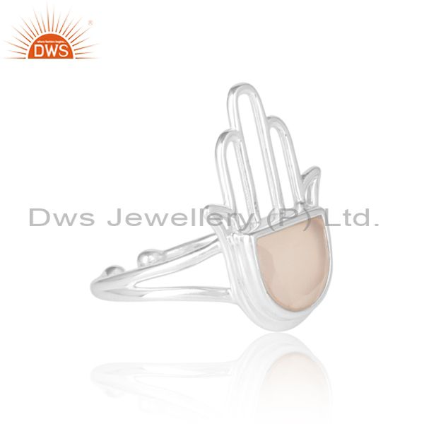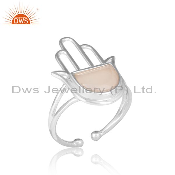 Rose Chalcedony Coin Set Fine Silver Hamsa Statement Ring