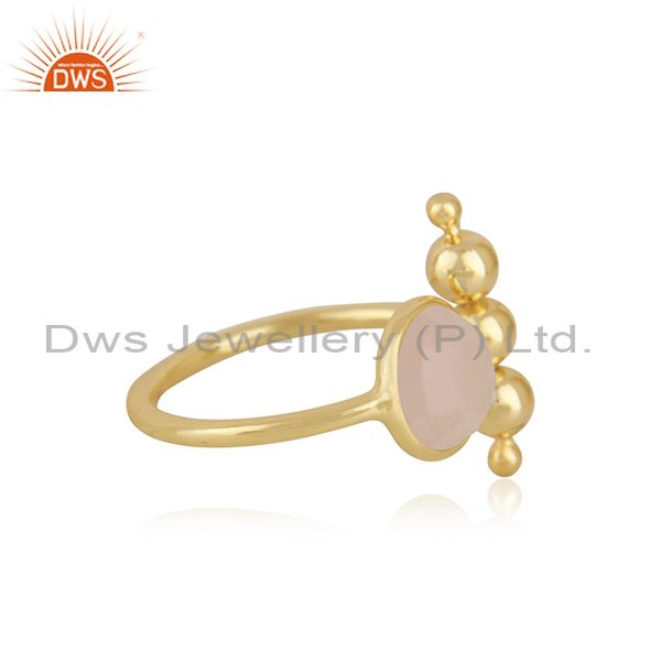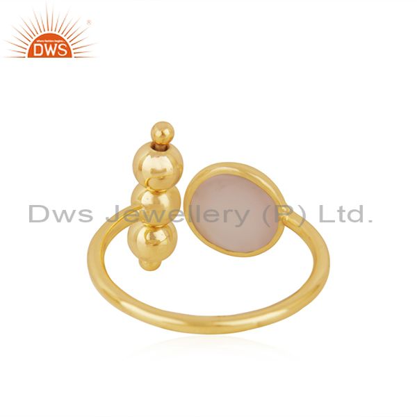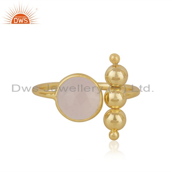 Rose Chalcedony Gemstone 925 Silver Gold Plated Designer Ring Manufacturer India