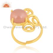 Rose Chalcedony Gemstone Gold Plated 925 Silver Floral Design Ring Suppliers