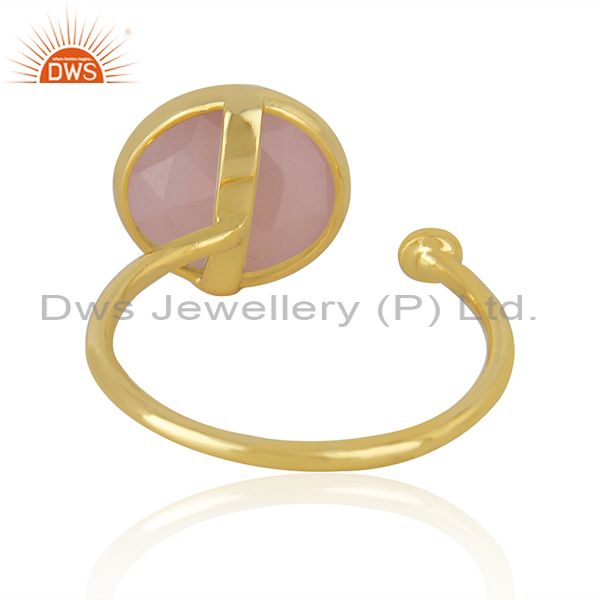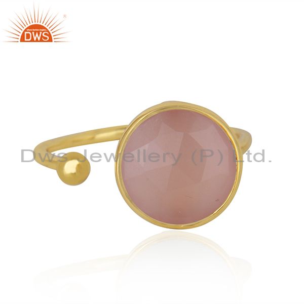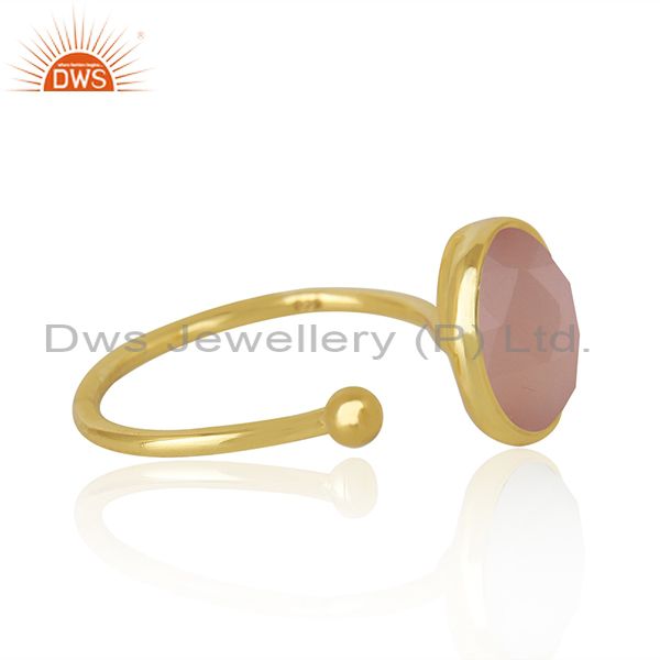 Rose Chalcedony Gemstone Gold Plated Silver Ring Jewelry For Womens