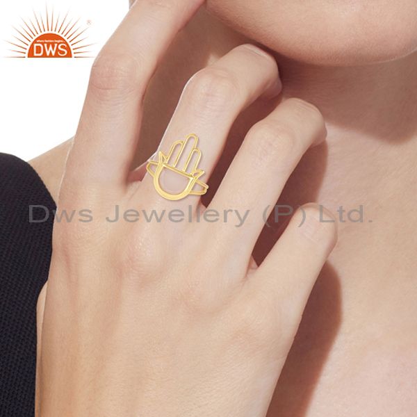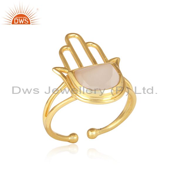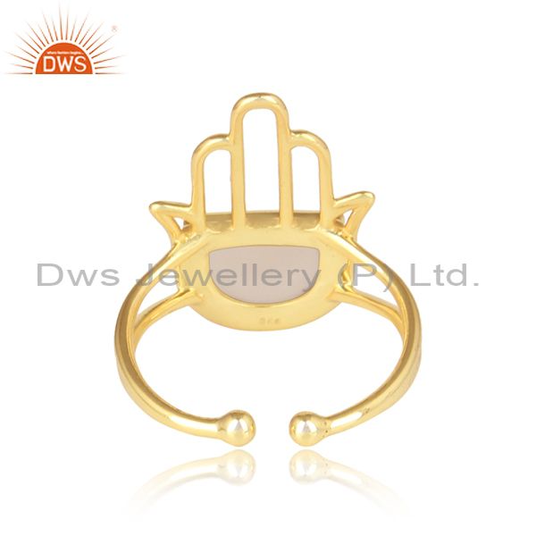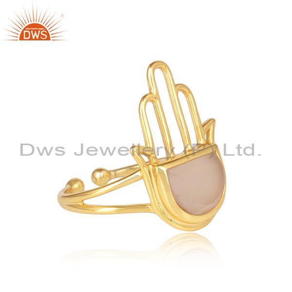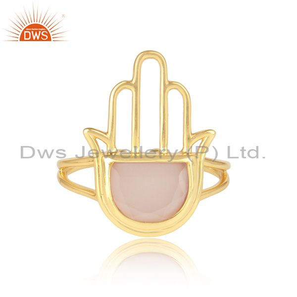 Rose Chalcedony Set Gold On 925 Silver Hamsa Designer Ring