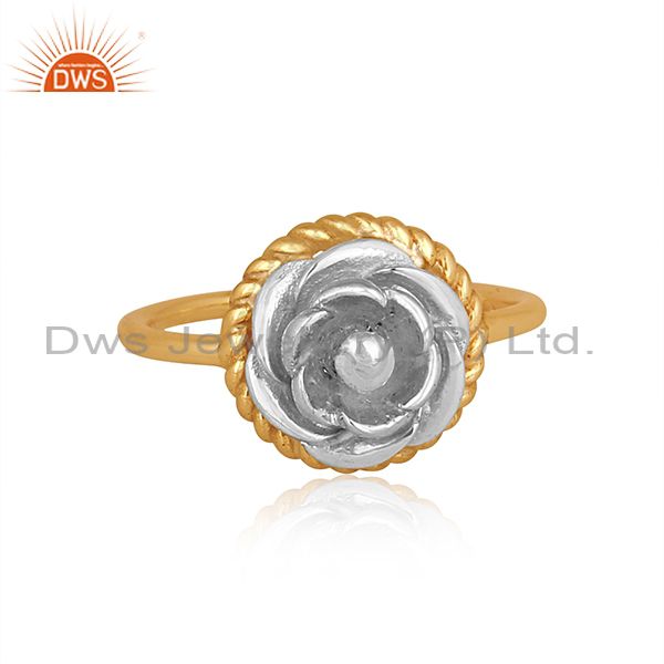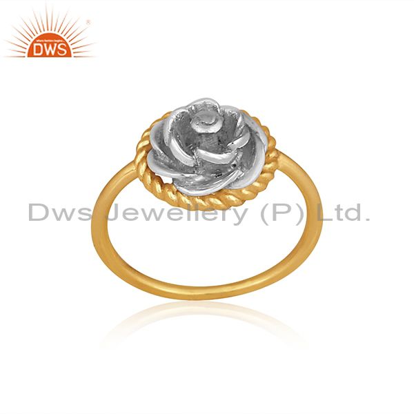 Rose Charm Set Brass Gold Handmade Designer Statement Ring