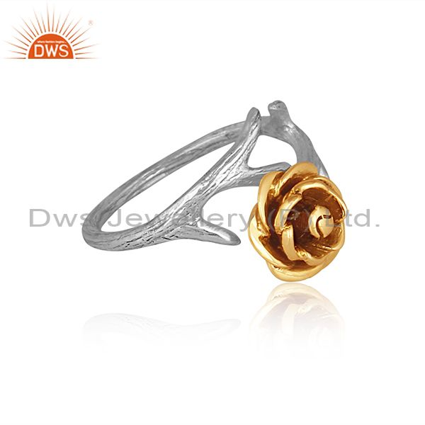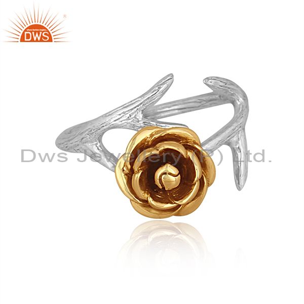 Rose Charm Set Gold On Fine Silver Designer Handmade Ring