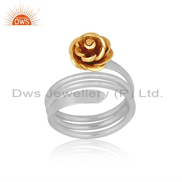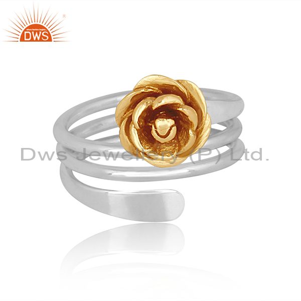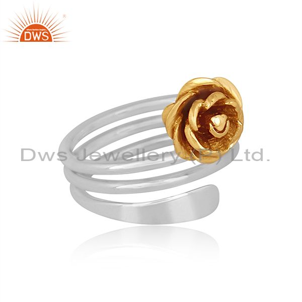 Rose Charm Set Gold On Fine Silver Twisted Statement Ring