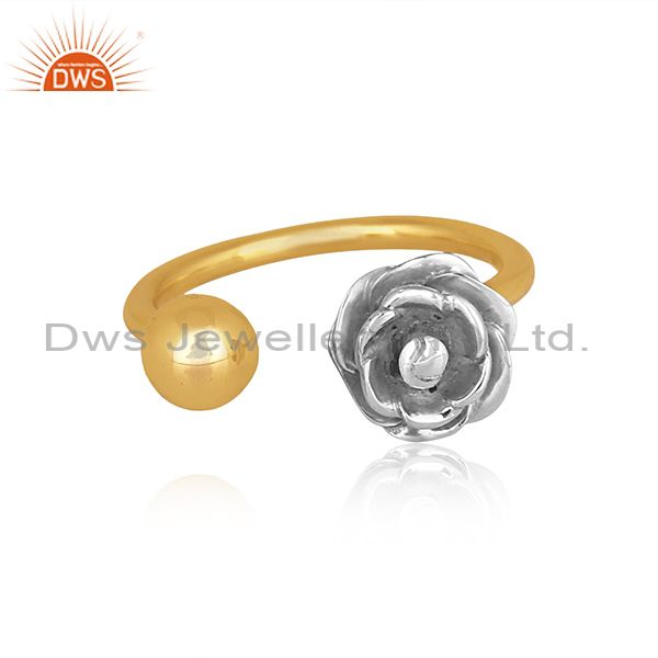 Rose Charm Set Handmade Brass Gold Designer Statement Ring