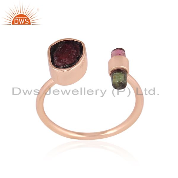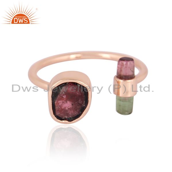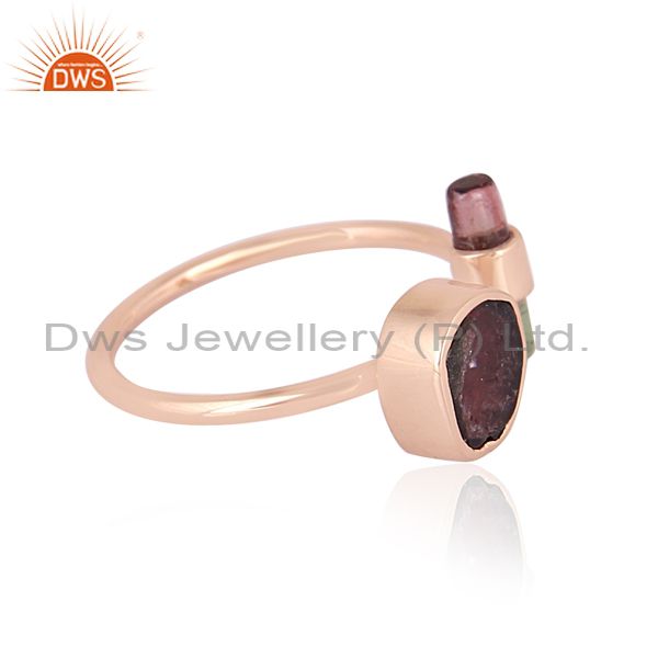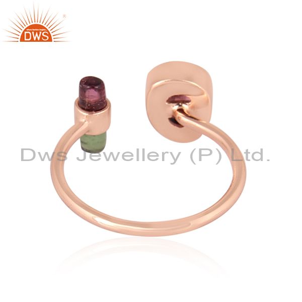 Rose Gold Plated 925 Silver Bio Tourmaline Gemstone Girls Rings