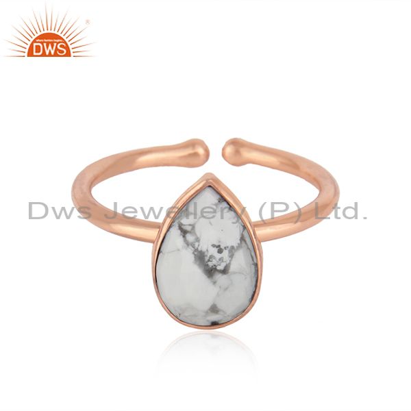 Rose Gold Plated 925 Silver Howlite Gemstone Adjustable Ring Jewelry