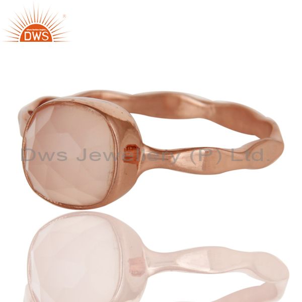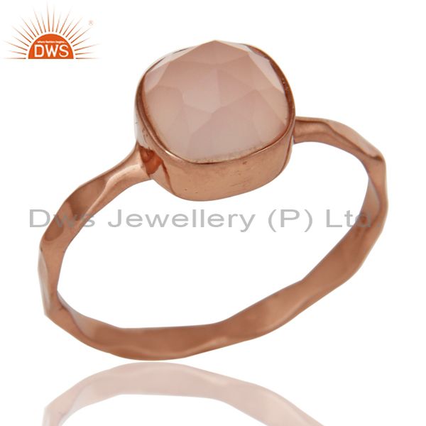 Rose Gold Plated Dyed Rose Chalcedony Sterling Silver Stackable Ring