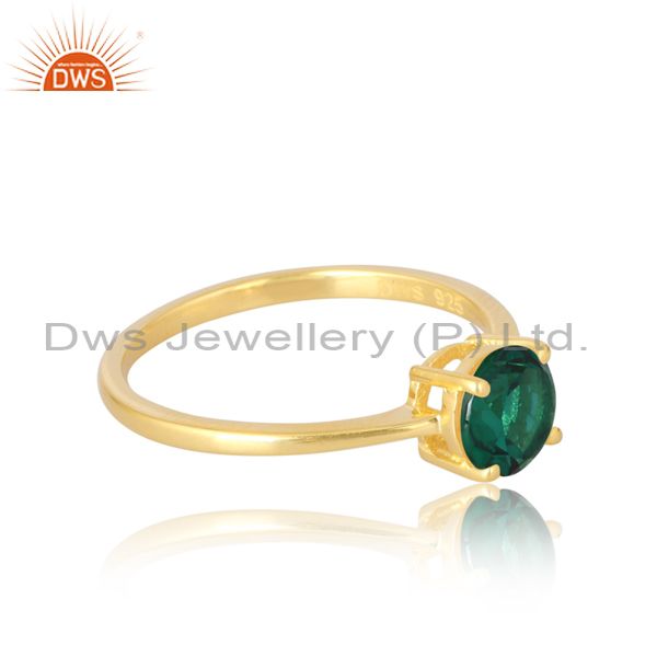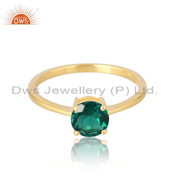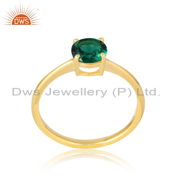 Rose Gold Plated Silver Lab-Created Emerald Cut Round Ring