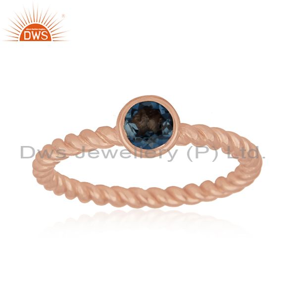 Rose Gold Plated Sterling Silver London Blue Topaz Gemstone Ring Manufacturer