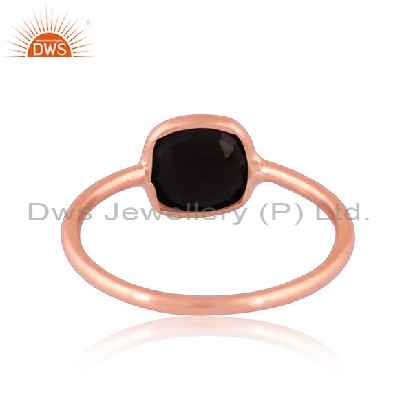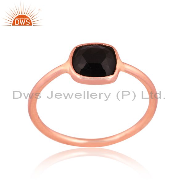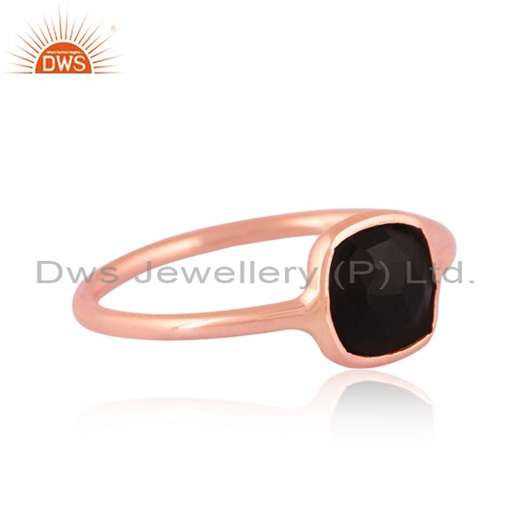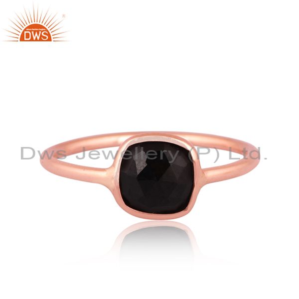 Rose Gold Ring With Black Onyx Briolette Cushion Cut Stone