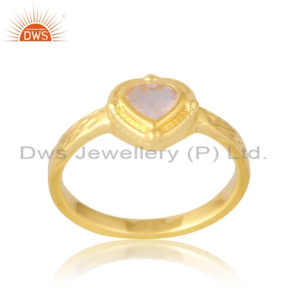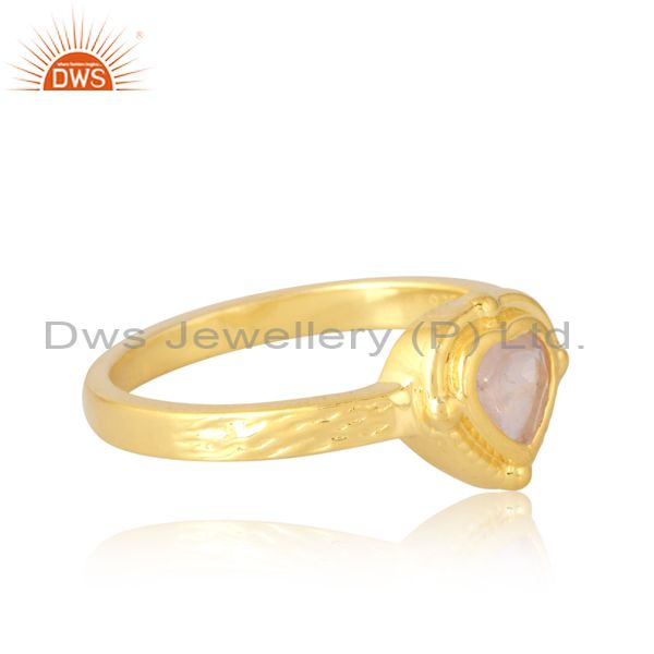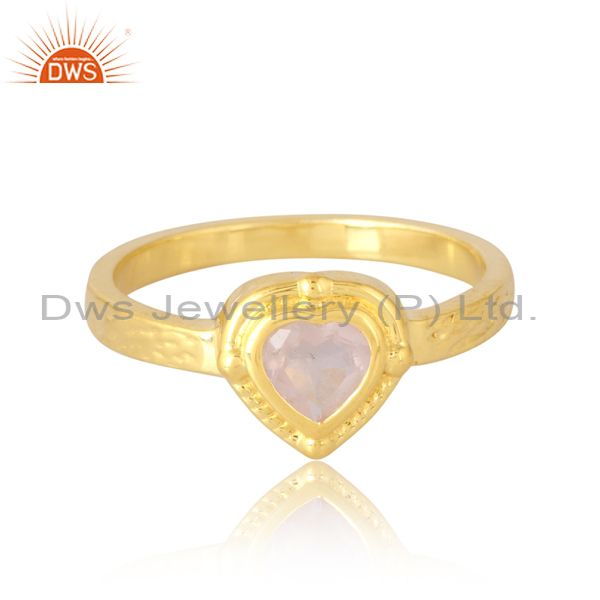 Rose Quartz Cut Heart Ring Gold Cross Textured Silver Shank