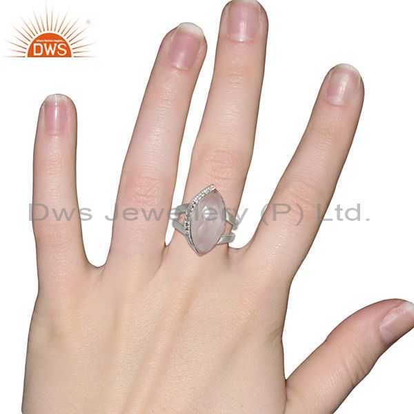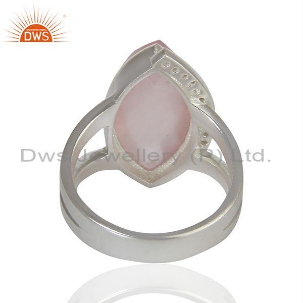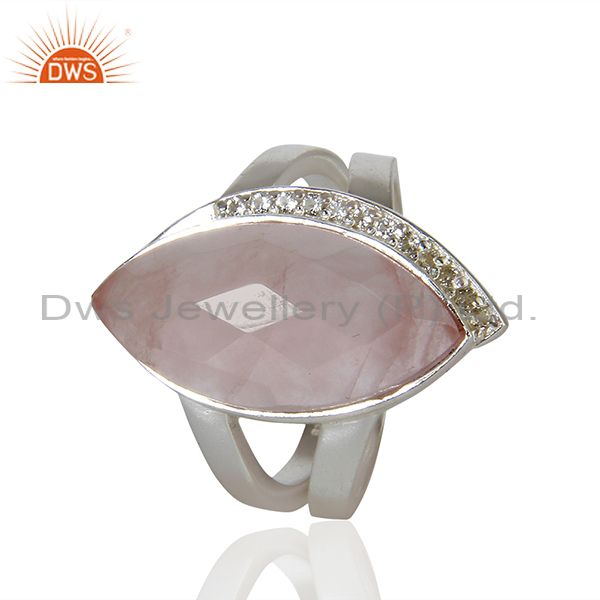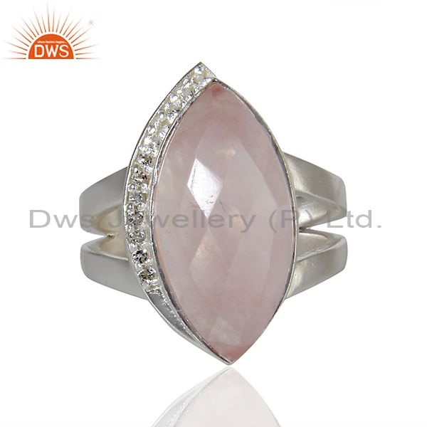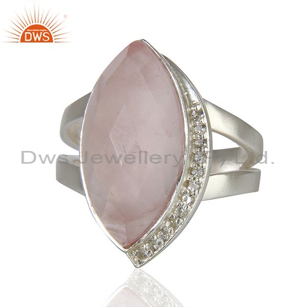 Rose Quartz Gemstone White Topaz Gemstone Sterling Fine Silver Ring