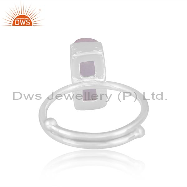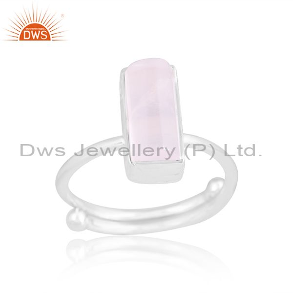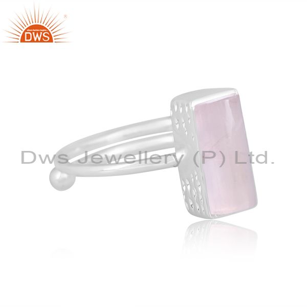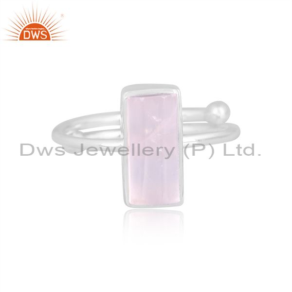 Rose Quartz Set Fine 925 Silver Handmade Rectangular Ring