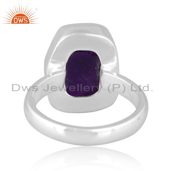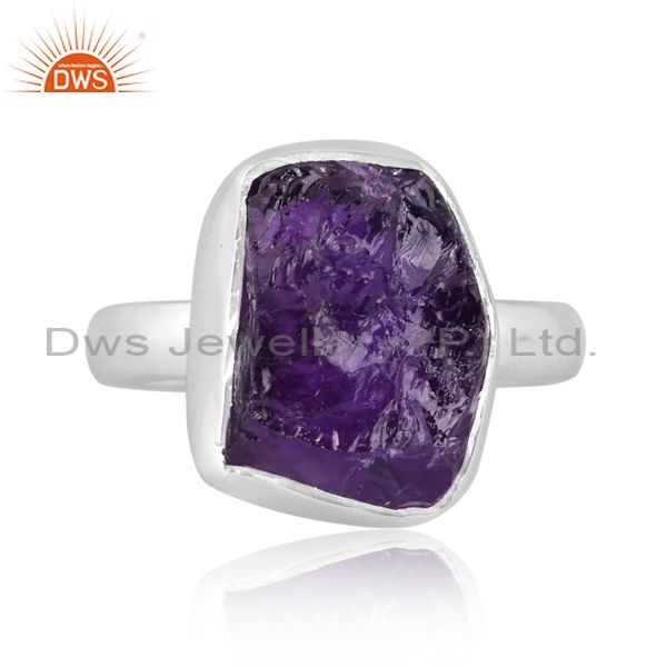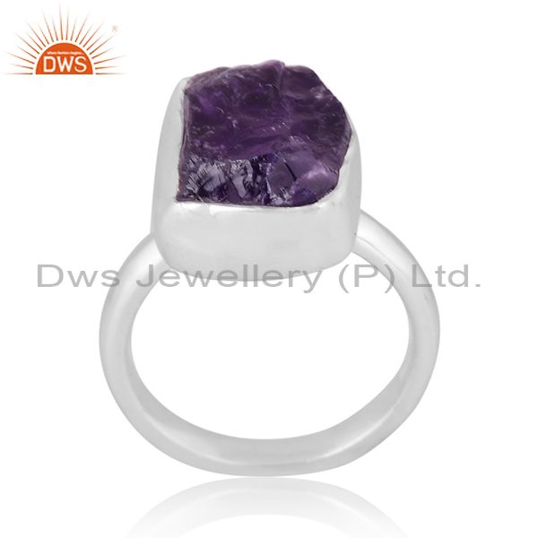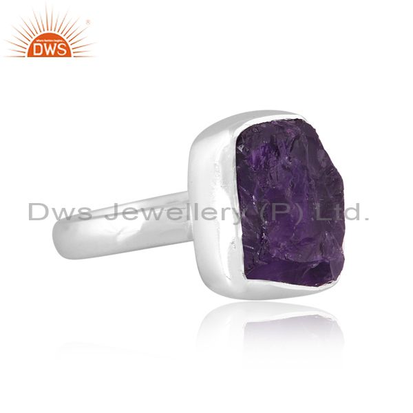 Rough Cut Amethyst Set Fine Sterling Silver Handmade Ring