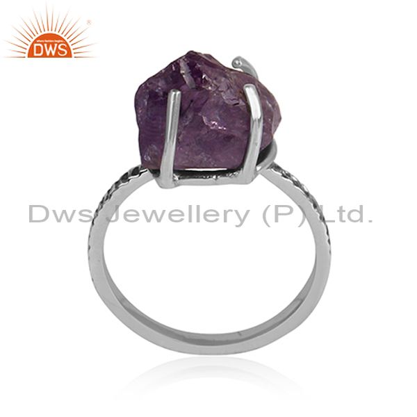 Rough Cut Amethyst Set Oxidized Sterling Silver Fancy Ring