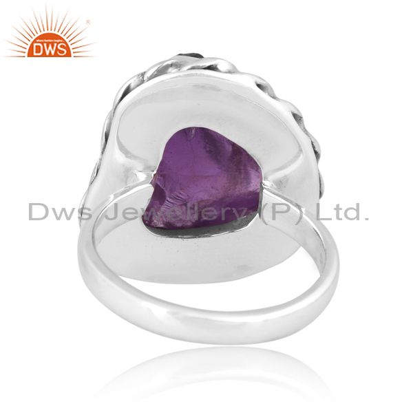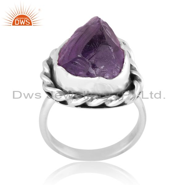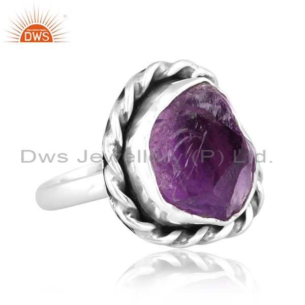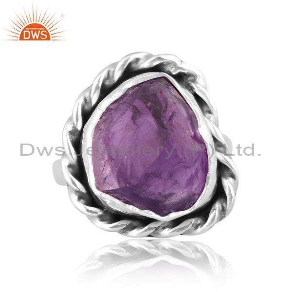 Rough Cut Amethyst Set Oxidized Sterling Silver Twist Ring
