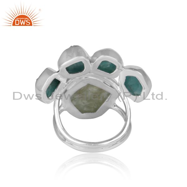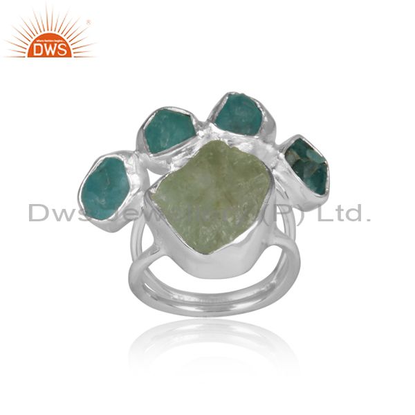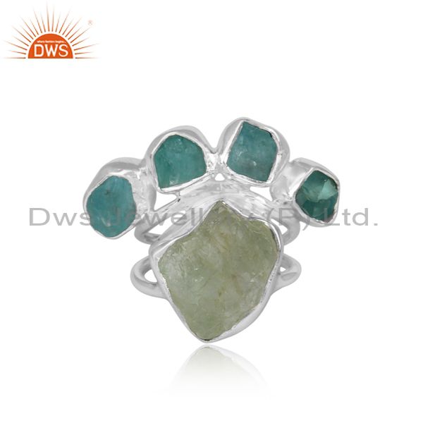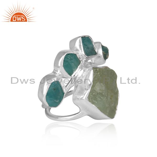 Rough Cut Apatite And Aquamarine Set Fine Silver Band Ring