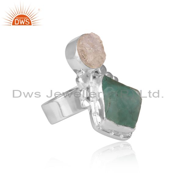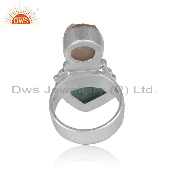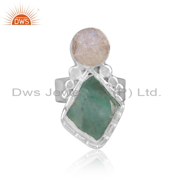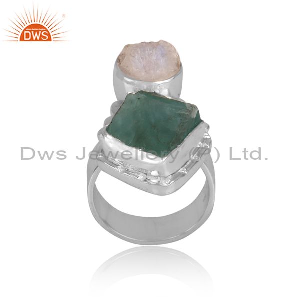 Rough Cut Apatite, Rainbow Moon Stone Fine Silver Band Ring