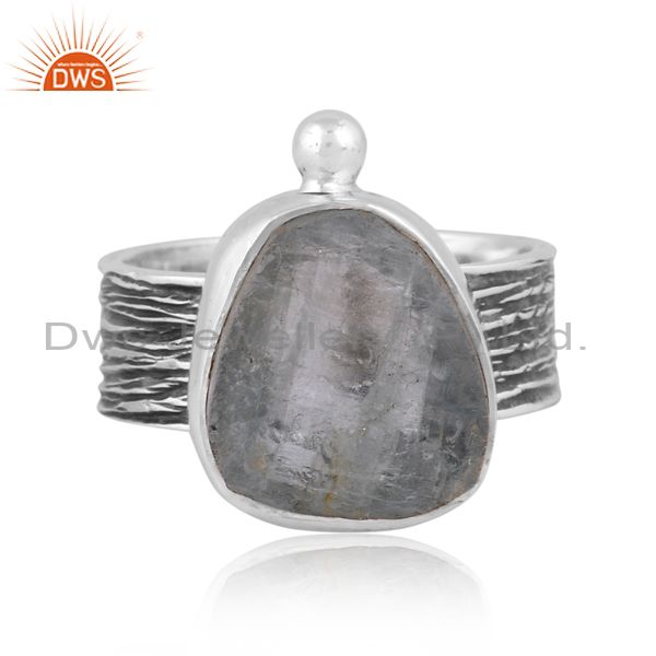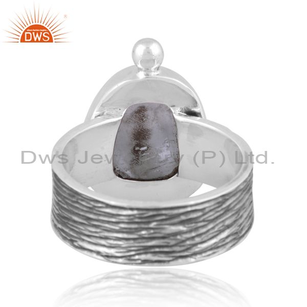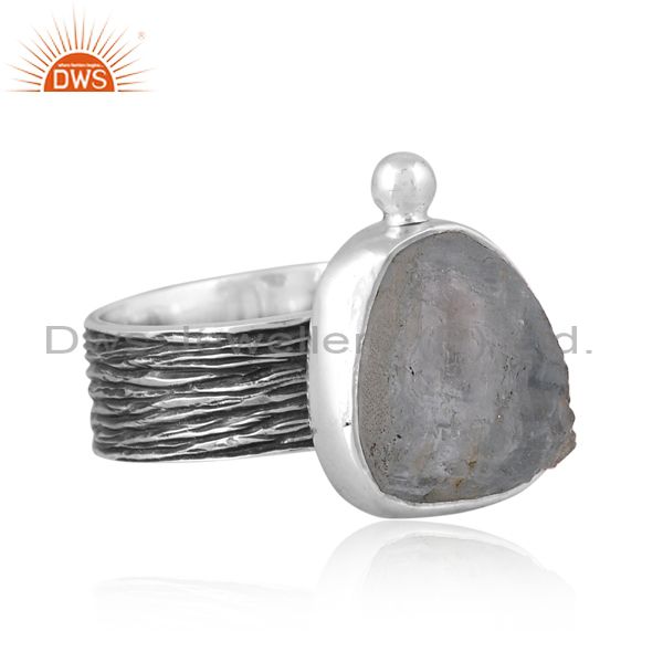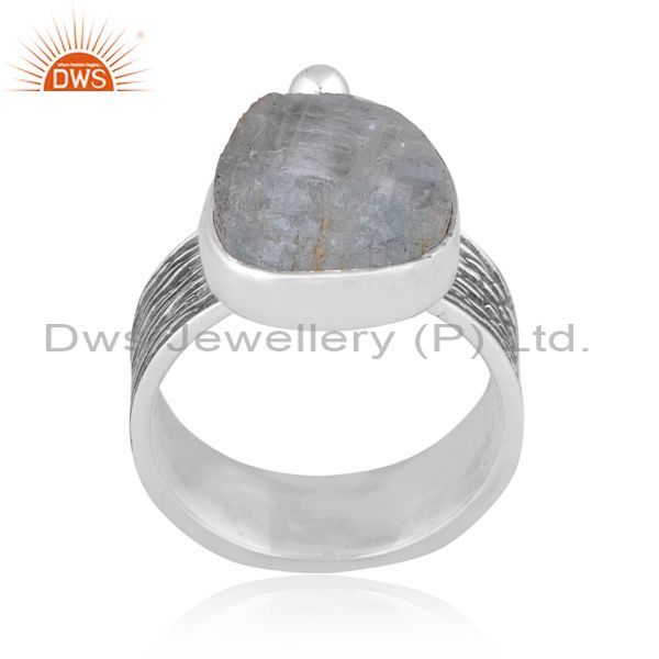 Rough Cut Aquamarine Set Oxide Sterling Silver Fancy Ring