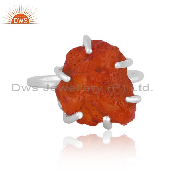 Rough Cut Carnelian Set Fine 925 Silver Abstract Crown Ring